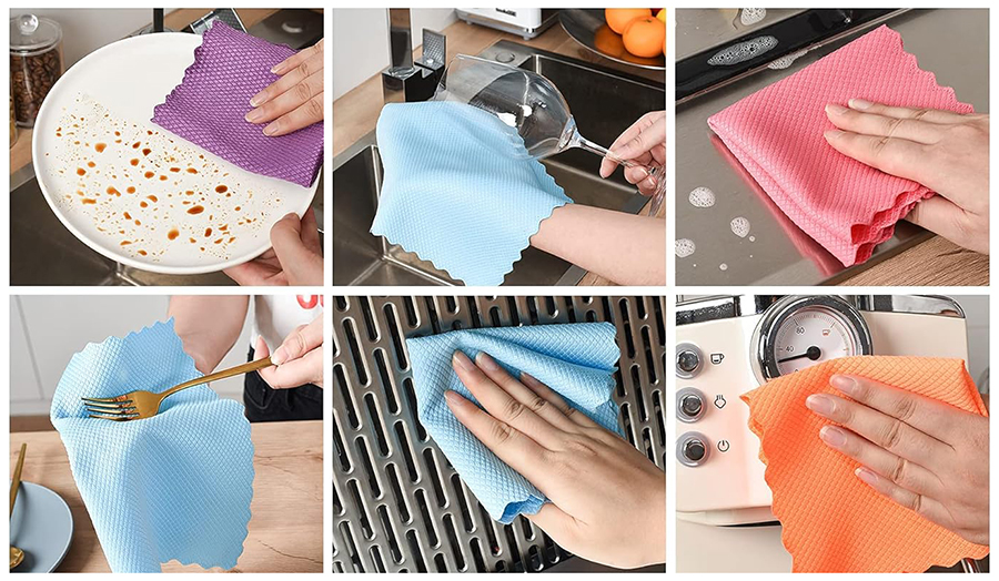 Construction: Made of polyester and nylon blend, the cloth features a special "fish scale" pattern design. The fabric blend ensures excellent durability, scratch resistance, and moisture absorption. The "fish scale" structure maximizes contact with cleaning surfaces, enhancing cleaning efficiency without damaging the surfaces being cleaned.